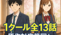 また、最終回となる第12話のみ、放送時間が30分前倒しされて26:38~に変更される予定ですので注意が必要です。