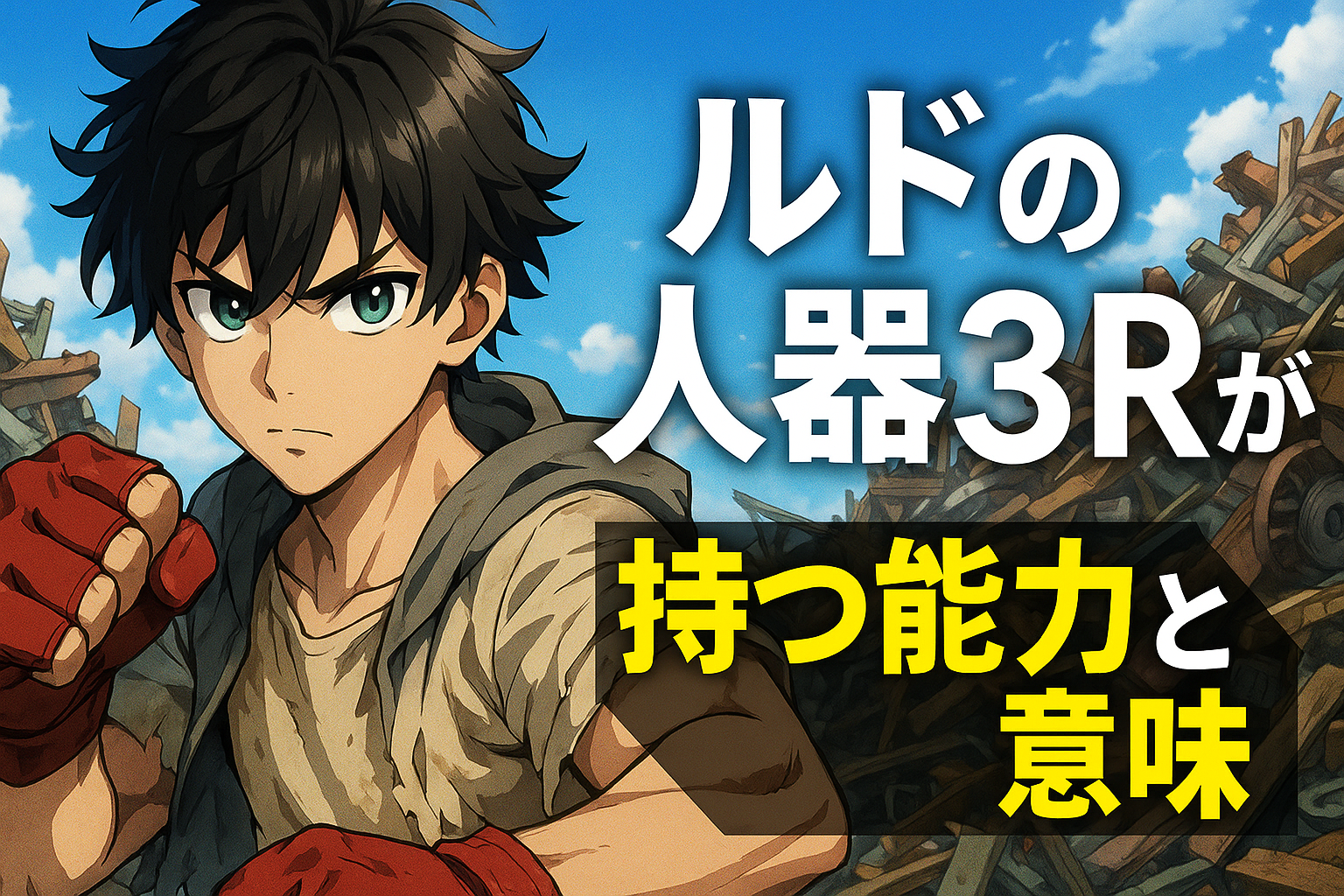 『ガチアクタ』において、主人公ルド・シュアブレックが身にまとう「人器3R」は、ただの武器ではありません。ゴミや廃材、役目を終えた“不要なもの”を再び意味あるものへと変える――そんな強烈なテーマが込められています。